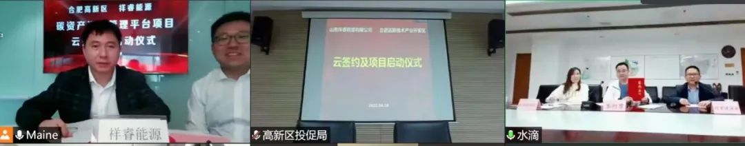 4月18日,安徽省合肥高新區(qū)與祥睿能源就碳資產(chǎn)運(yùn)營管理平臺(tái)項(xiàng)目達(dá)成深度合作,并通過線上云簽約的方式,舉行啟動(dòng)儀式。合肥高新區(qū)投資促進(jìn)局副局長陳利軍、新興產(chǎn)業(yè)處處長何志強(qiáng)、生態(tài)環(huán)境分局副局長黃兆麗,祥睿能源董事長王正通、總裁楊新宇、總工程師孫大偉、低碳云中心總經(jīng)理尉言等出席儀式。