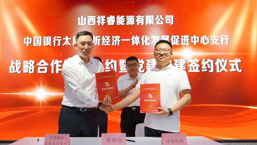 5月31日上午,中國銀行山西省分行太忻支行與祥睿能源舉行戰(zhàn)略合作協(xié)議簽約暨黨建共建簽約儀式。山西省委統(tǒng)戰(zhàn)部副部長郭延斌,中國銀行山西省分行黨委委員、副行長王智勇,太忻支行支部書記、行長安興華等蒞臨現(xiàn)場,祥睿能源董事長王正通,總裁楊新宇,山西復(fù)興能源研究院名譽院長白祚祥,黨支部專職副書記武忠民等出席簽約儀式。