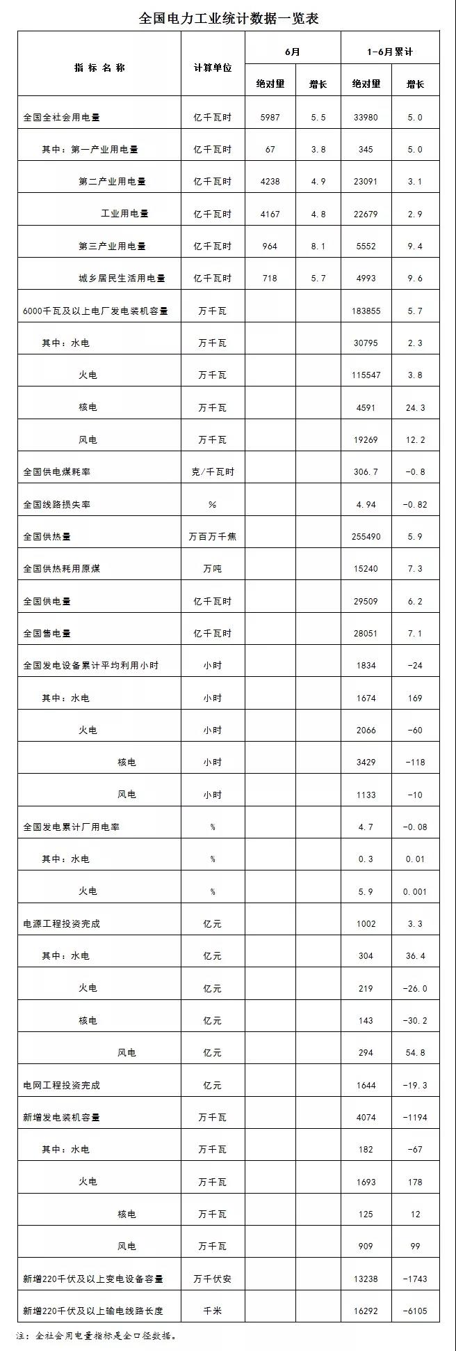 | 能源局發(fā)布1-6月份全國電力工業(yè)統(tǒng)計數(shù)據(jù) |