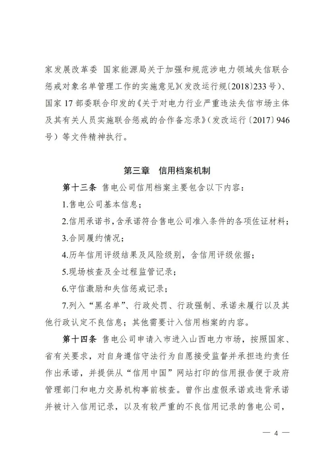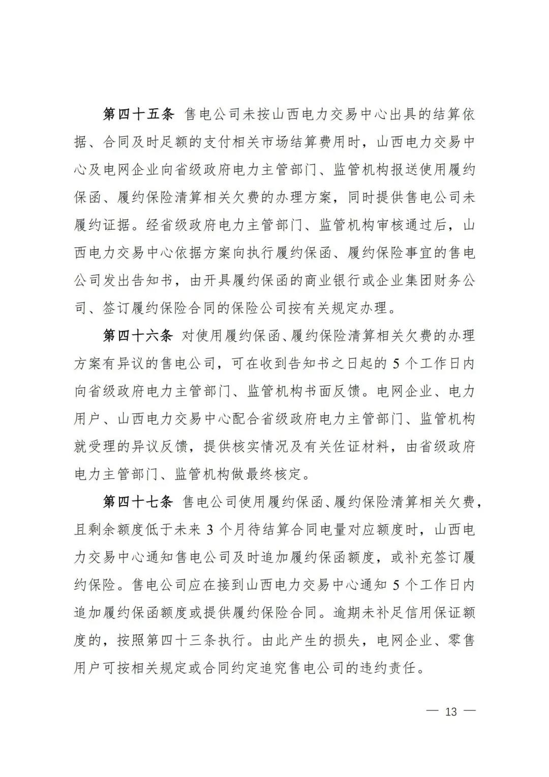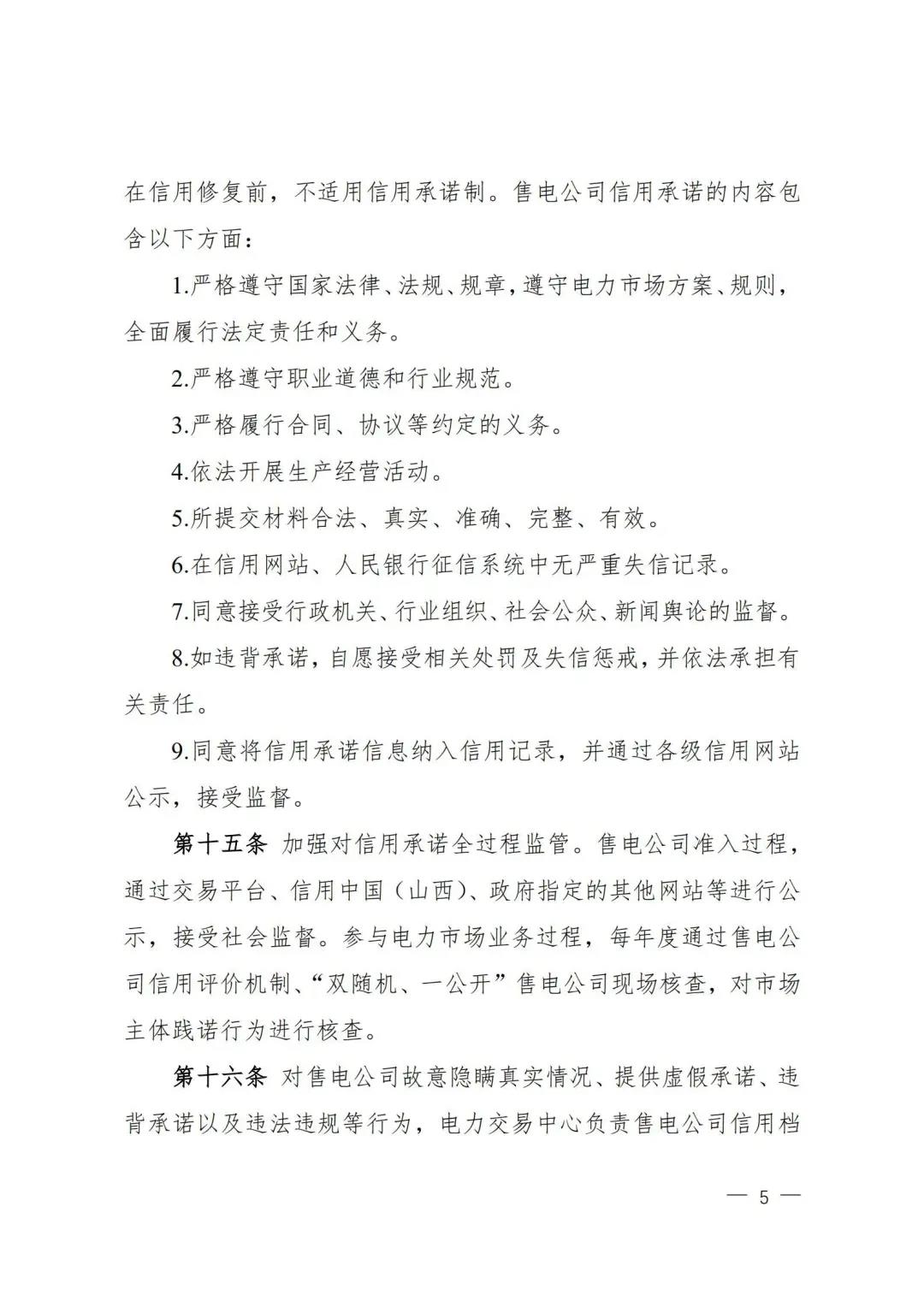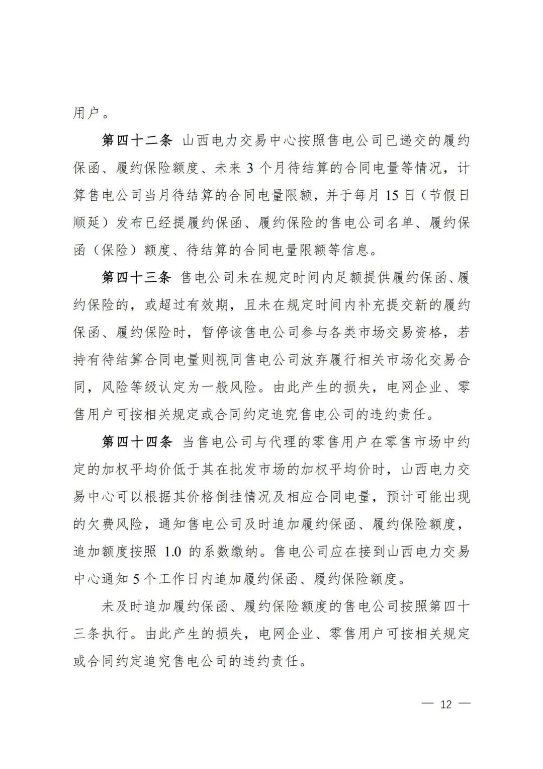 | 山西電力市場售電公司信用評價(jià)與風(fēng)險(xiǎn)防范管理辦法:依據(jù)風(fēng)險(xiǎn)級別執(zhí)行履約保函、保險(xiǎn)或風(fēng)險(xiǎn)保證金措施 |
